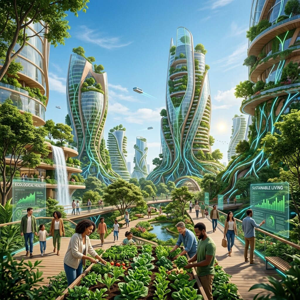 Cities become living entities, seamlessly blending technology and natural systems to create habitats that support human and ecological well-being….